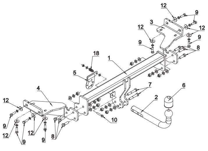 | Расположение фаркопа | Балка фаркопа внутри бампера |